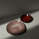 A handcrafted ceramic plate set by Slovenian artist Hana Karim, known for her organic silhouettes and expressive glazes. This pairing brings together two warm, nature-inspired tones: Rose Water, a soft blush pink and Pomegranate Red, a rich, earthy red.Each piece is shaped and glazed by hand, with natural variations that give the set its quiet character and charm. Ideal for serving small bites, desserts, or adding a gentle touch of colour to any table setting.Includes• Rose Water Side Plate• Pomegranate Red Mini Plate