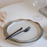 Our Wabi Tableware is beloved for its soft glaze and serene, minimalist character. This small batch, however, arrived from our artisan supplier with an unexpected warm brown clay base instead of the usual full glaze.